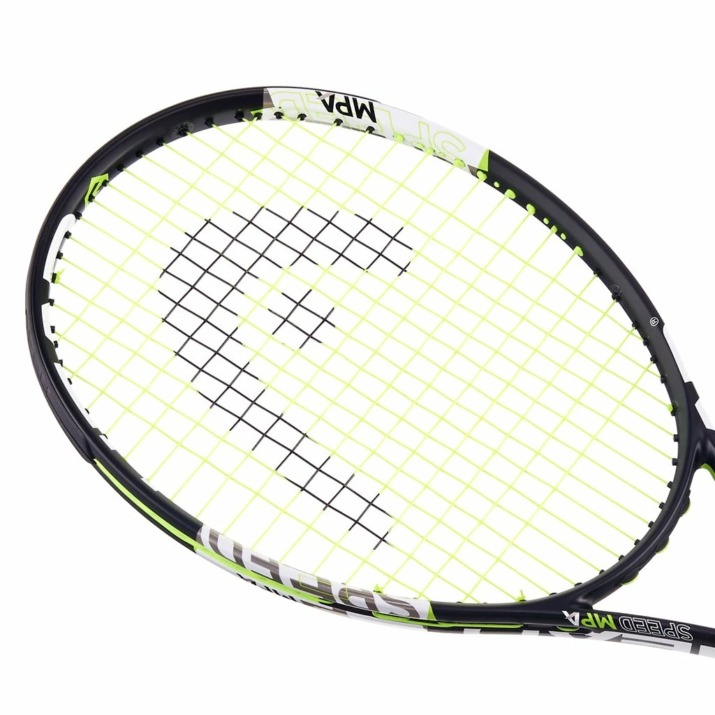 The Head Graphene XT Speed MP A has been updated with new technology and specs for the modern game. As one of the smoothest playing frames in the Head line and most popular, the Speed MP A delivers tremendous power and control. The MP has been upgraded to provide players with a spin friendly string pattern. Adaptive String Pattern (ASP) is Head’s interchangeable grommet system that can switch the string pattern from 16×19 to 16×16 for added power and spin. The 16×16 string pattern really puts extra depth on the ball and bites into it for added rotations. The Graphene XT Speed MP A delivers exceptional handling from all areas of the court but really shines on ground strokes and on serve because of its power and spin.