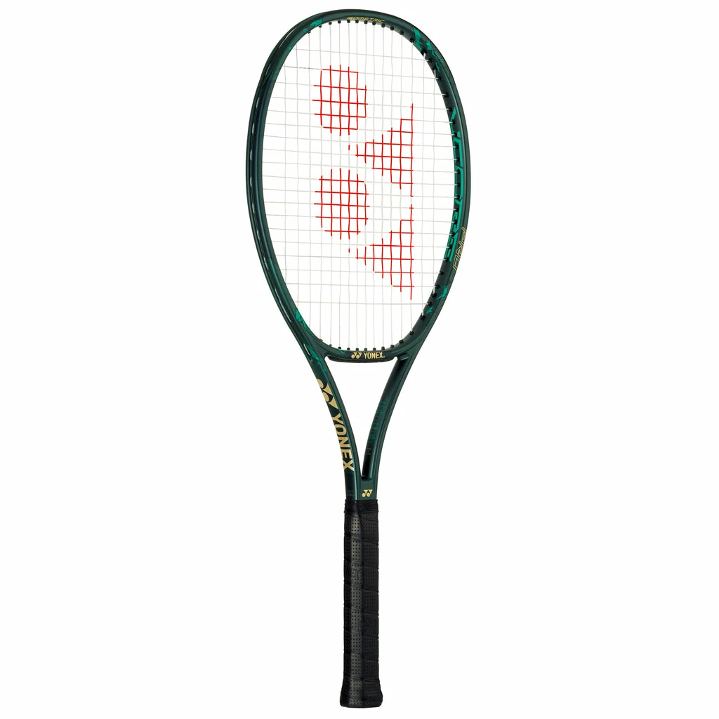 The Yonex VCORE Pro 100 (280g) is a great racquet for players that want lightweight maneuverability. Updated with Vibration Dampening Mesh (VDM), a stretchy mesh material wrapped around the handle for improved comfort, the VCORE Pro 100 (280g) delivers forgiveness and easy power for its specs. The thin frame design keeps players connected to the ball and Yonex’s Namd graphite, a graphite that promotes flex, provides longer dwell time on the strings. While not as consistent for crushing plow-through as the heavier VCORE Pros, the Yonex VCORE Pro 100 (280g) does give more than its weight indicates. The even balance of the racquet helps to control the racquet head and makes this a perfect blank canvas for customizations. Overall the Yonex VCORE Pro (280g) plays very quickly and excels as a tweener racquet or for players that want to build up a completely custom racquet with their own specs in mind. Forgiving and comfortable the Yonex VCORE Pro 100 (280g) is perfect for a wide range of up-and-coming players.